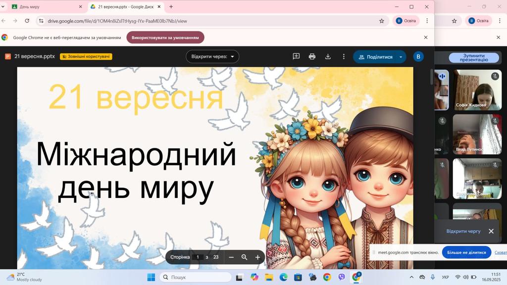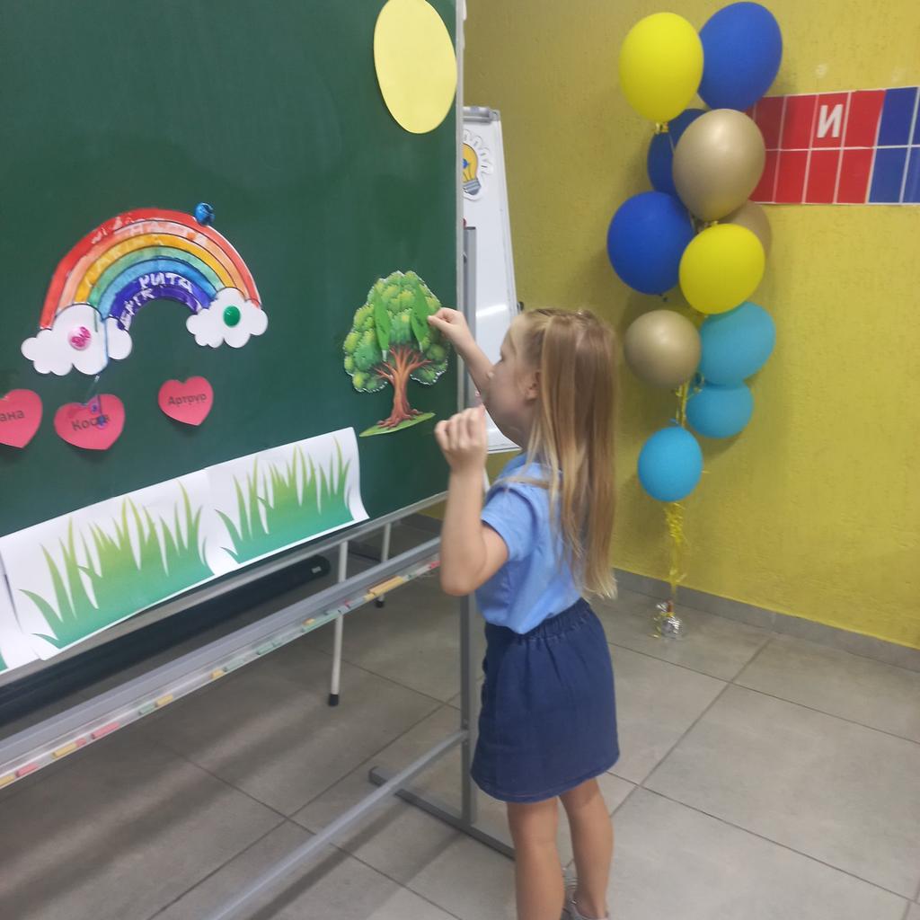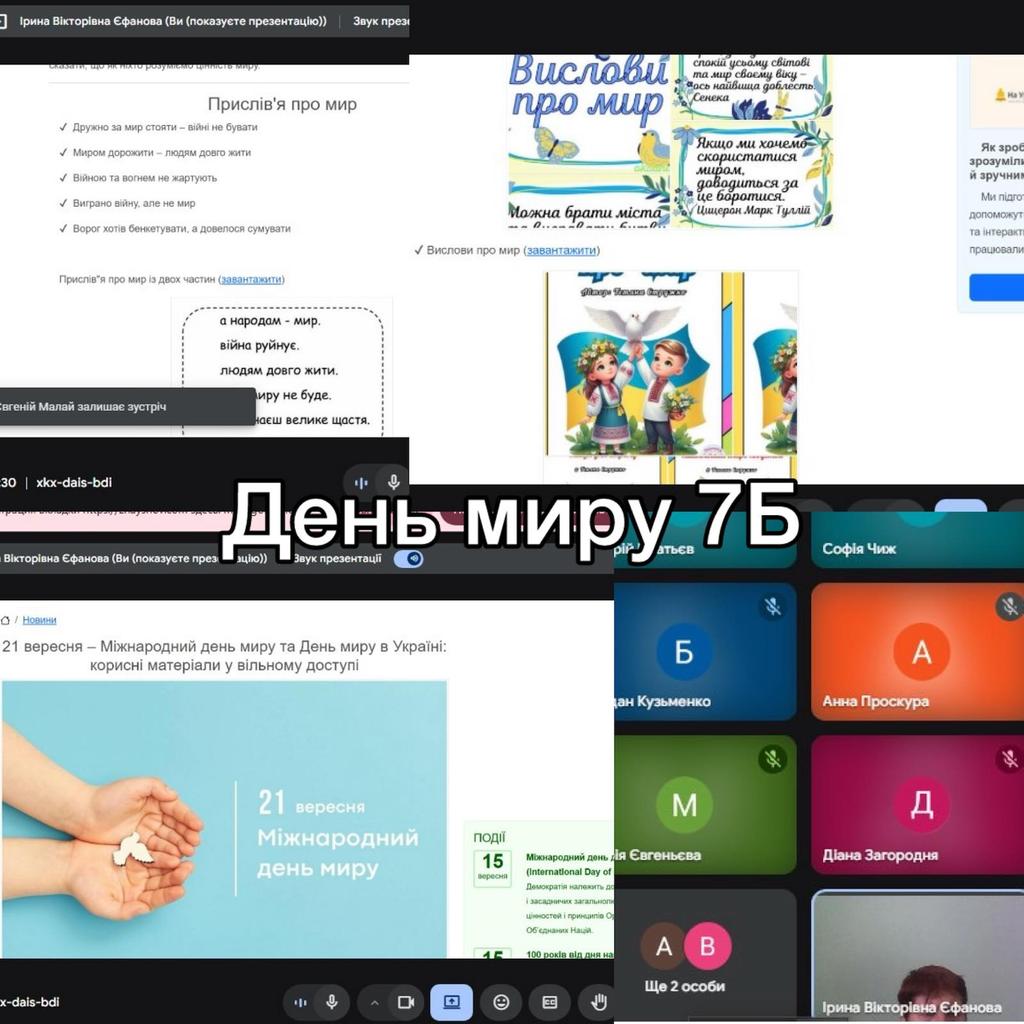 Діти емоційно реагують на ті події , які відбуваються в Україні. Серед них є такі, що втратили свої домівки, змушені були покинути населені пункти в яких росли. Тому всі вони розуміють яке значення для українців має цей день. В 5-Б класі відбувся захід до Дня миру.