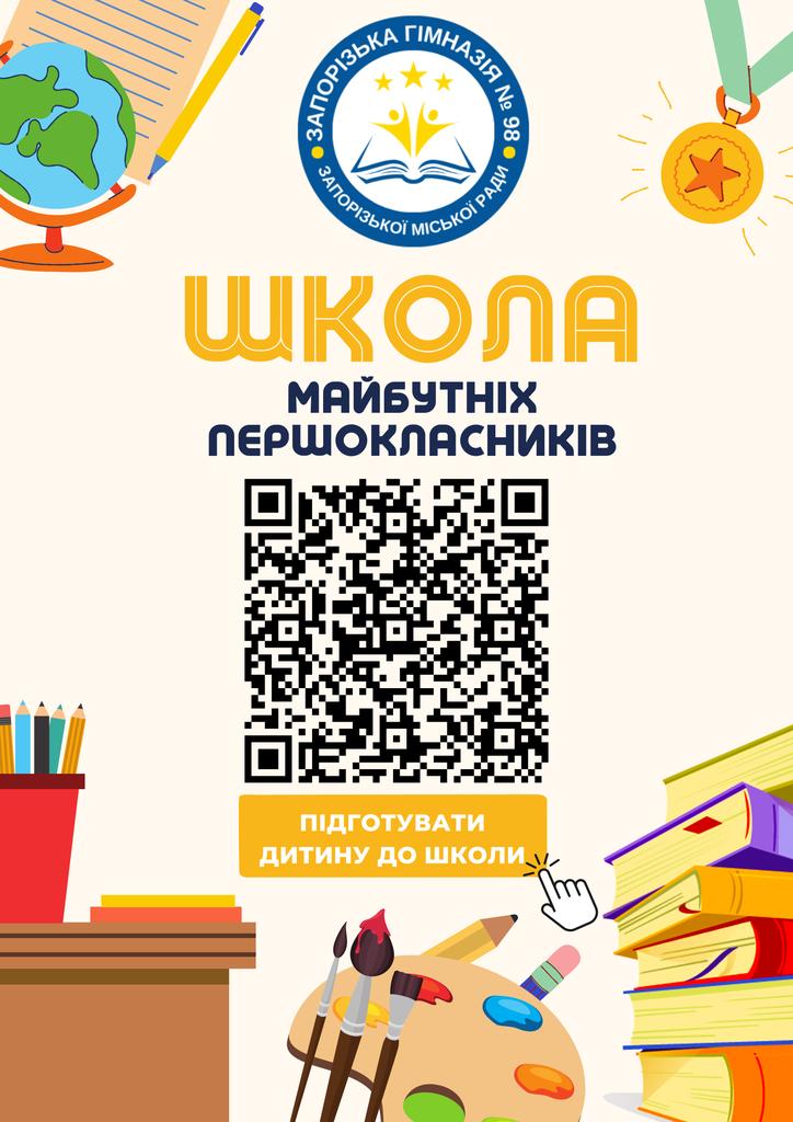 Запорізька гімназія розпочинає набір дітей дошкільного віку до Школи Майбутнього Першокласника — програми комплексної підготовки до навчання в 1 класі. Мета програми — сформувати в дитини необхідні навчальні, комунікативні та психологічні компетентності для успішного старту шкільного життя. У програмі навчання: